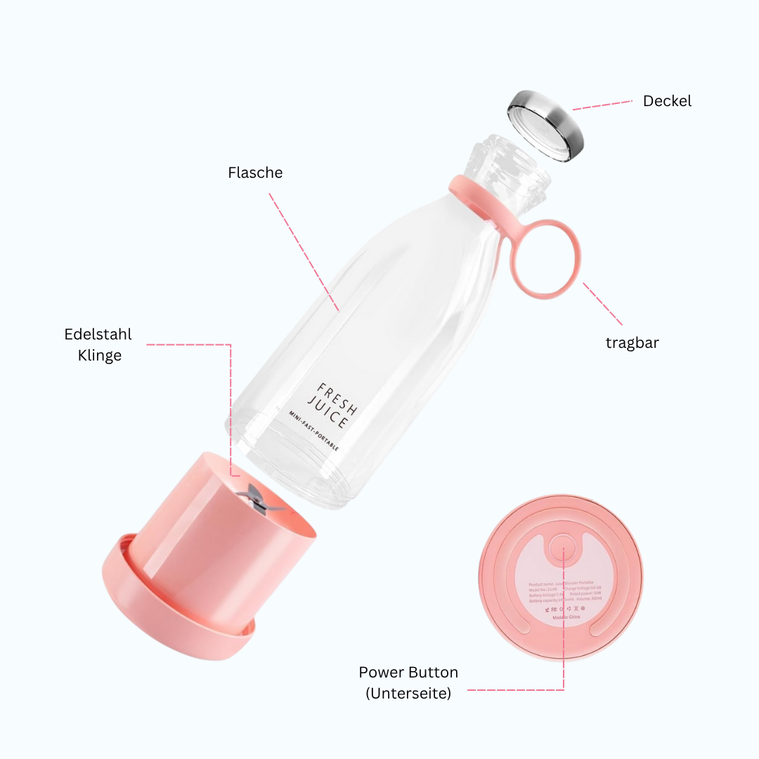 Das kompakte Design erlaubt es dir, ihn überall hin mitzunehmen – ob ins Büro, Fitnessstudio, Camping oder auf Reisen. Die einfache Ein-Knopf-Bedienung macht das Mixen kinderleicht.